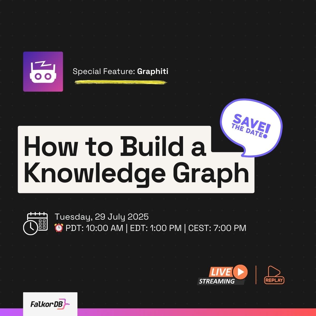 The FalkorDB team is hosting a workshop on July 29th: "How to Build a Knowledge Graph." The session focuses on building production knowledge graphs from both structured and unstructured data sources, featuring a sports-focused case study.